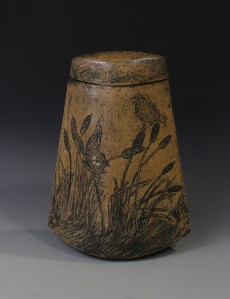 Redwinged Blackbird covered jar front