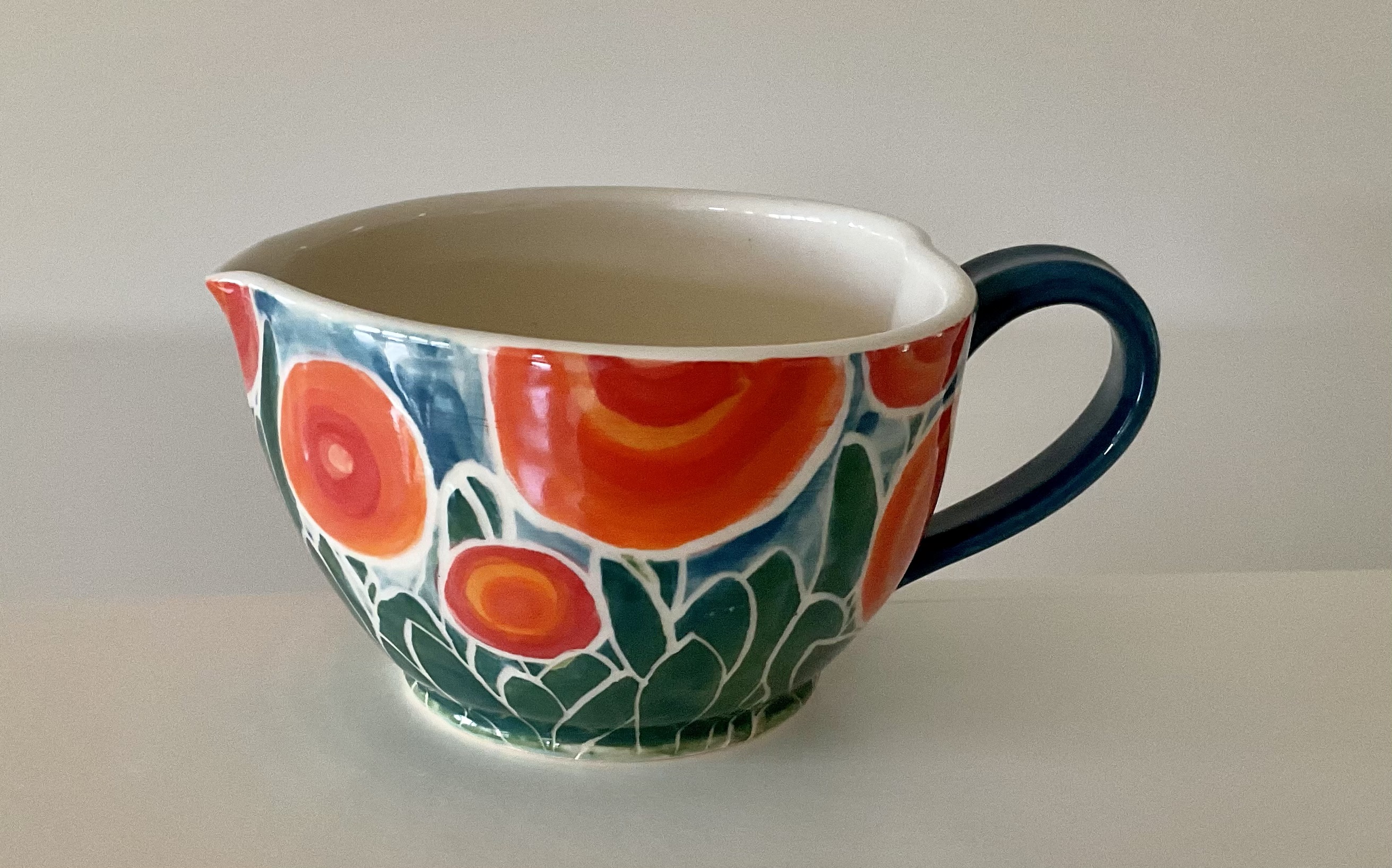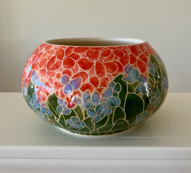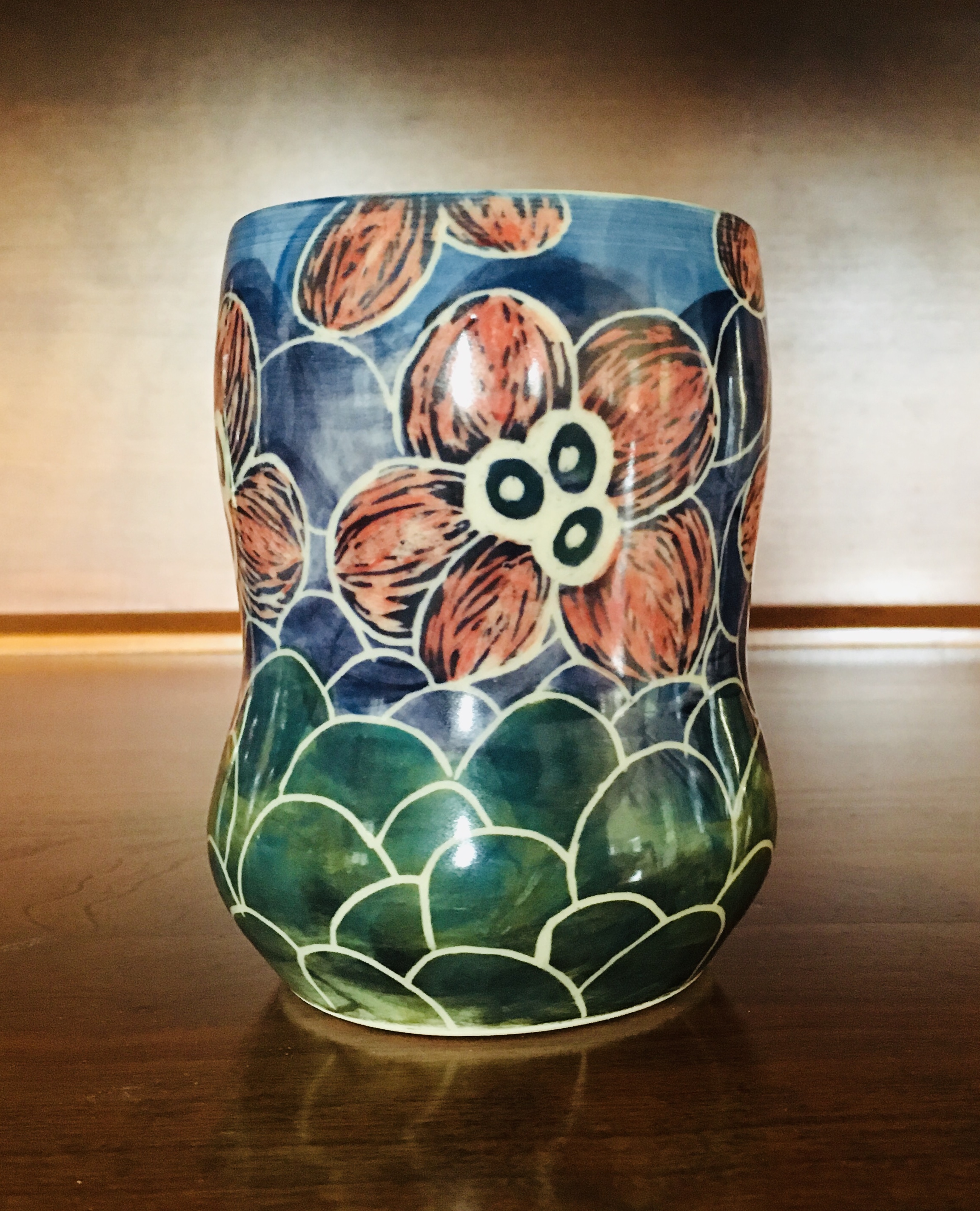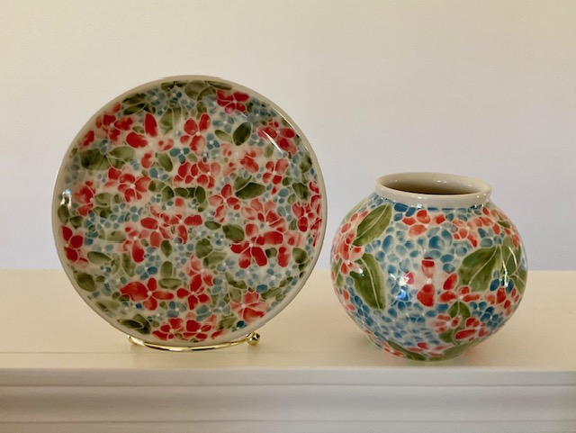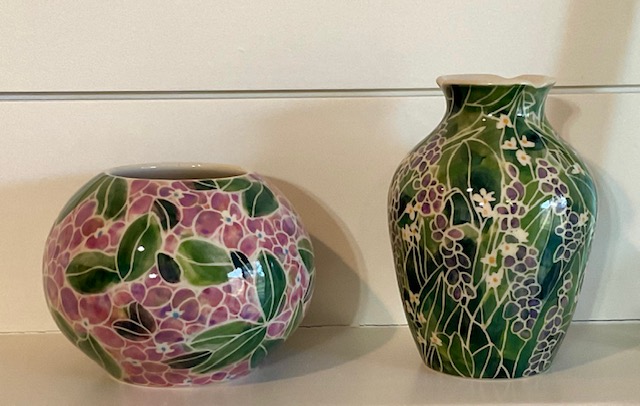 Throughout my life I have loved to paint. When I discovered the fun and creativity of making pottery, I saw the clay as a three-dimensional canvas—a way to merge my passion for both painting and ceramics. My original works include carved, watercolor florals and abstract patterns on a slightly contemporary form, with simple clean lines that enhance my painted designs. I make pottery to be functional but also to be looked at and enjoyed as art. My intention as a ceramic artist is to create beautiful, functional pieces that bring joy to your everyday life.