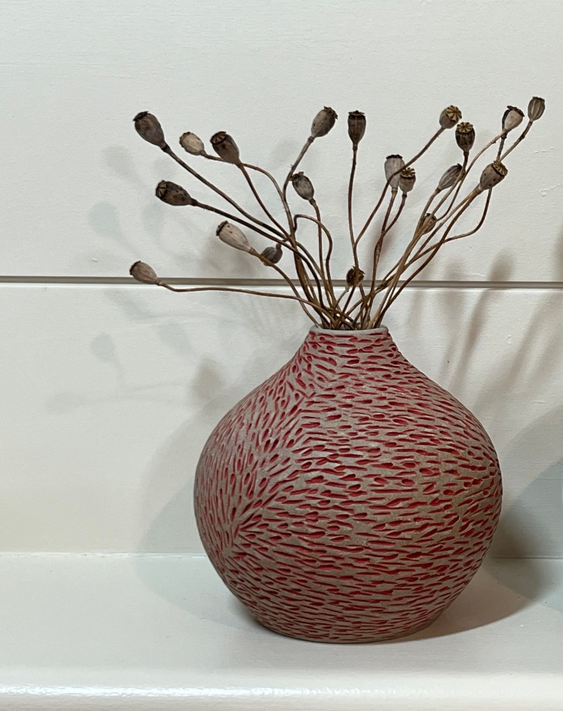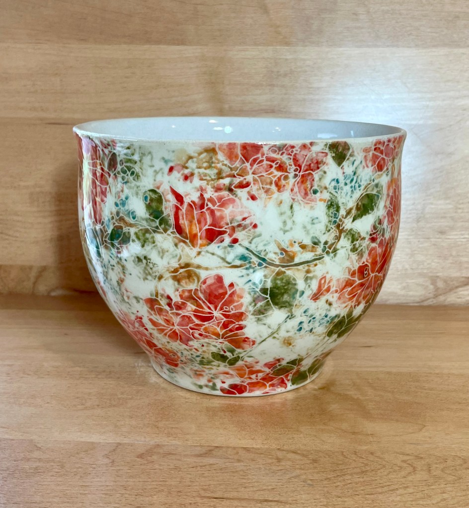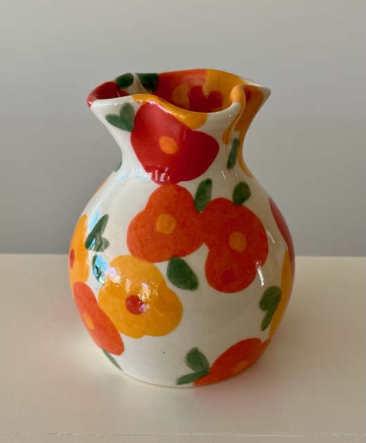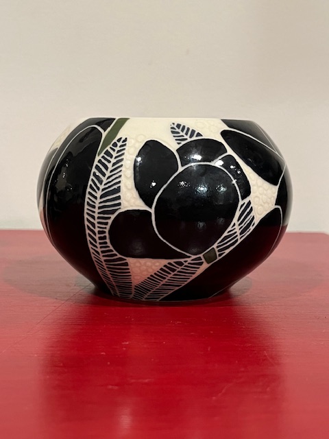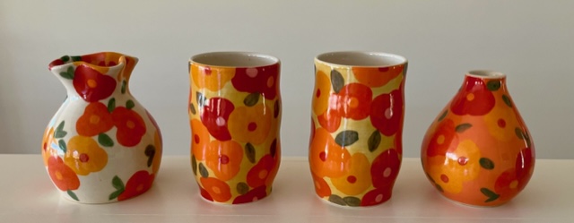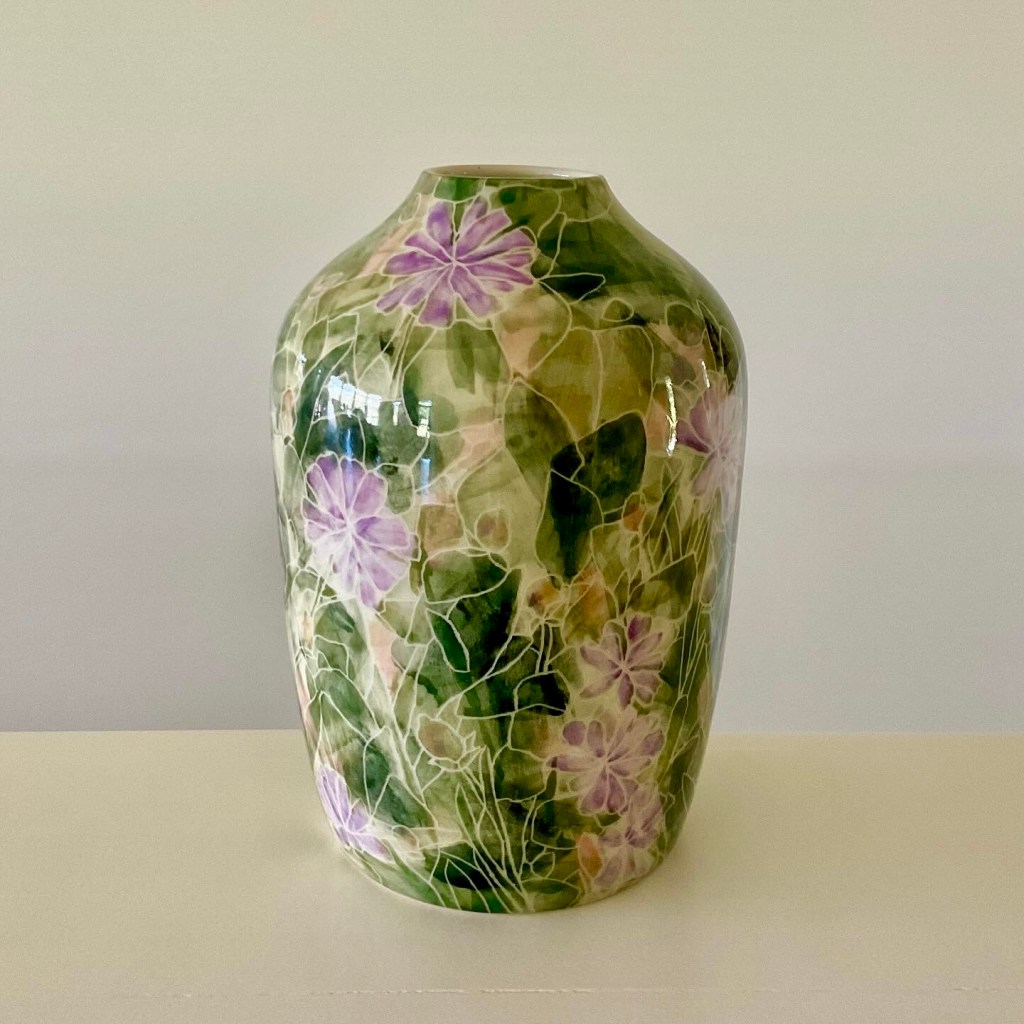 Throughout my life I have loved to paint. When I discovered the fun and creativity of making pottery, I saw the clay as a three-dimensional canvas—a way to merge my passion for both painting and ceramics. My original works include carved, watercolor florals and abstract patterns on a slightly contemporary form, with simple clean lines that enhance my painted designs. I make pottery to be functional but also to be looked at and enjoyed as art. My intention as a ceramic artist is to create beautiful, functional pieces that bring joy to your everyday life.