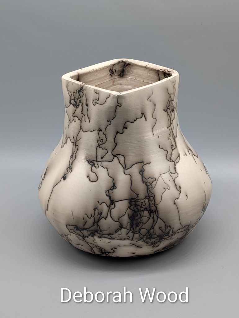 I have always enjoyed utilizing alternative firing methods but after many years of experimentation, have come to prefer making horse hair pots with porcelain as well as terracotta clays. I love the sense of movement the dark linear lines convey as well as the spontaneous effects of smoke clouds on the burnished clay surface. Finishing my pots with a wax sealant retains that earthy, natural appearance that I want to convey. I draw inspiration for my forms from traditional southwest Native American pottery.