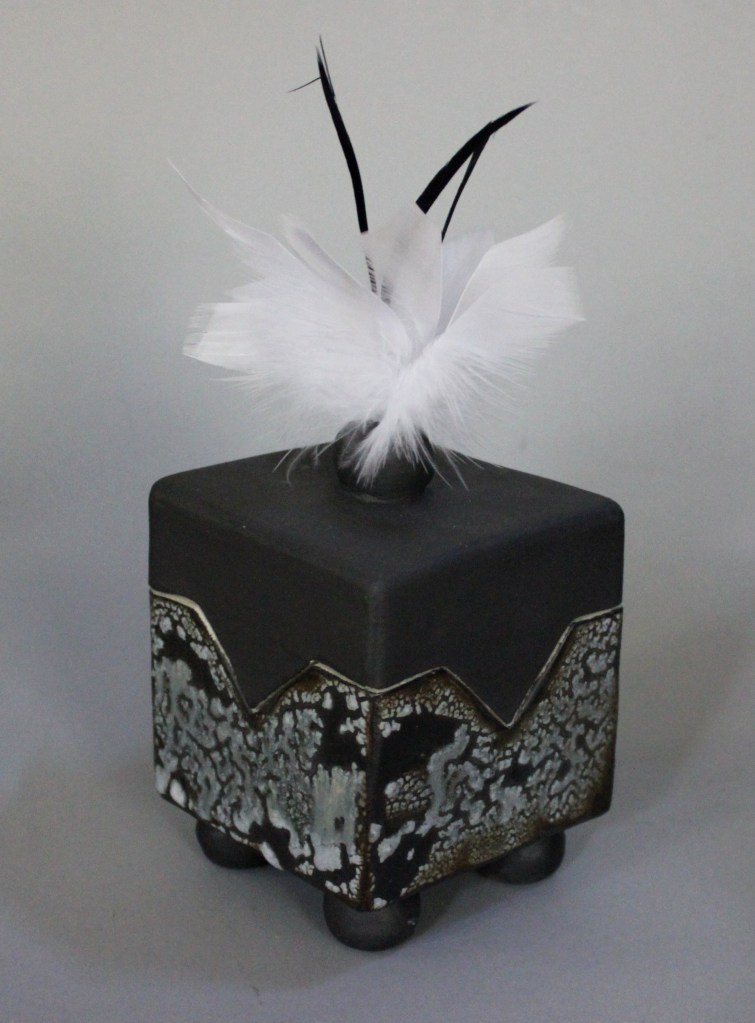 I like alternative firing because it is unique and unpredictable – almost magic. When I first saw Naked Raku, I fell in love. I am attracted to the starkness of black and white and the random cracks and negative spaces. This form of raku, where the glaze is applied, fired, and removed is special. The exposed clay, with its remaining carbon markings, is remarkable.
