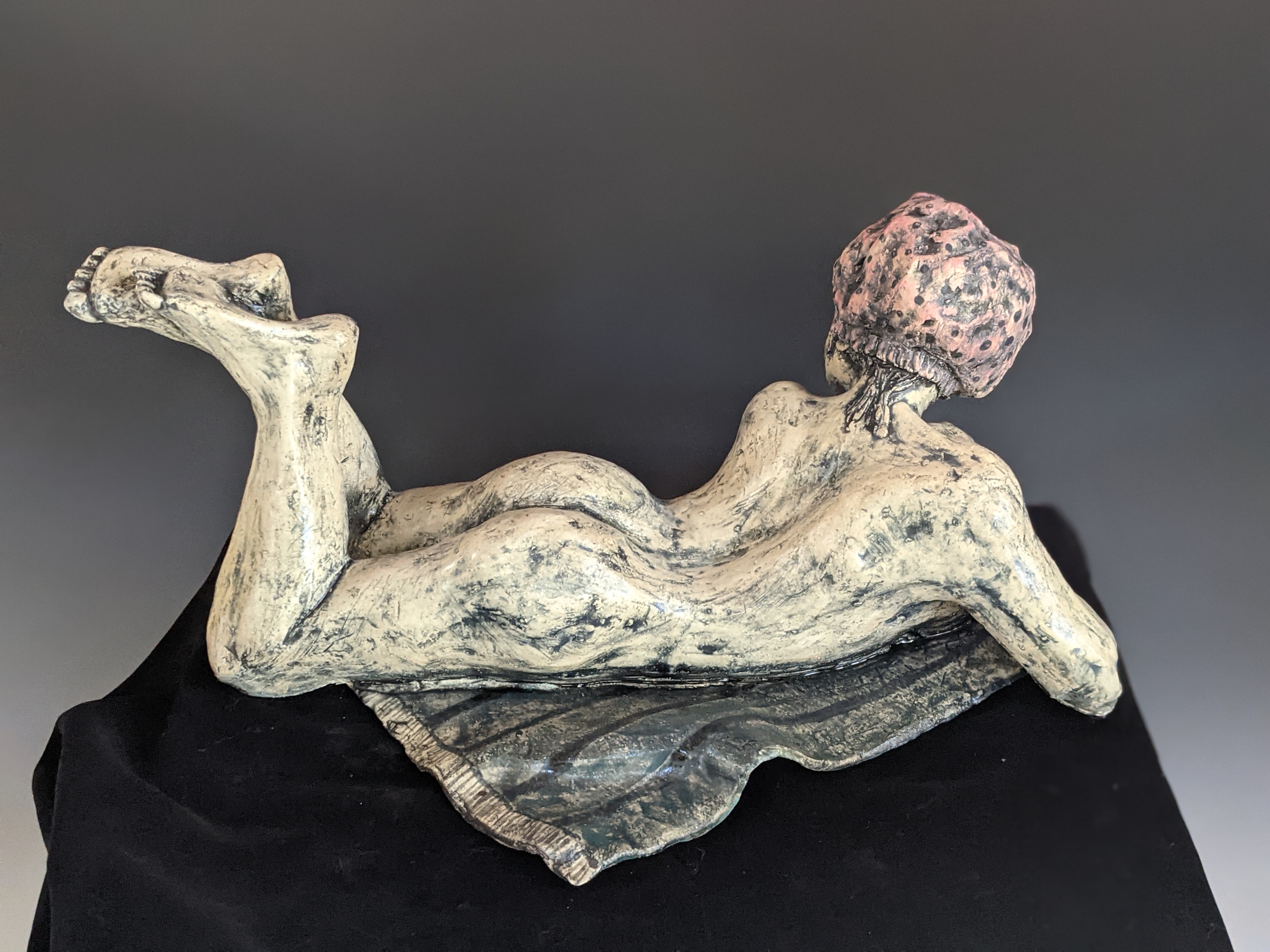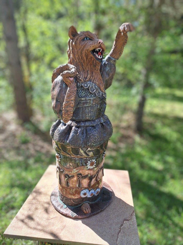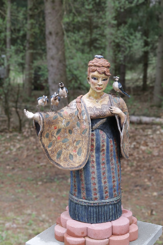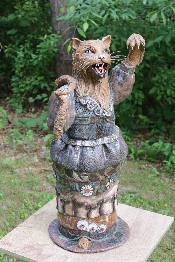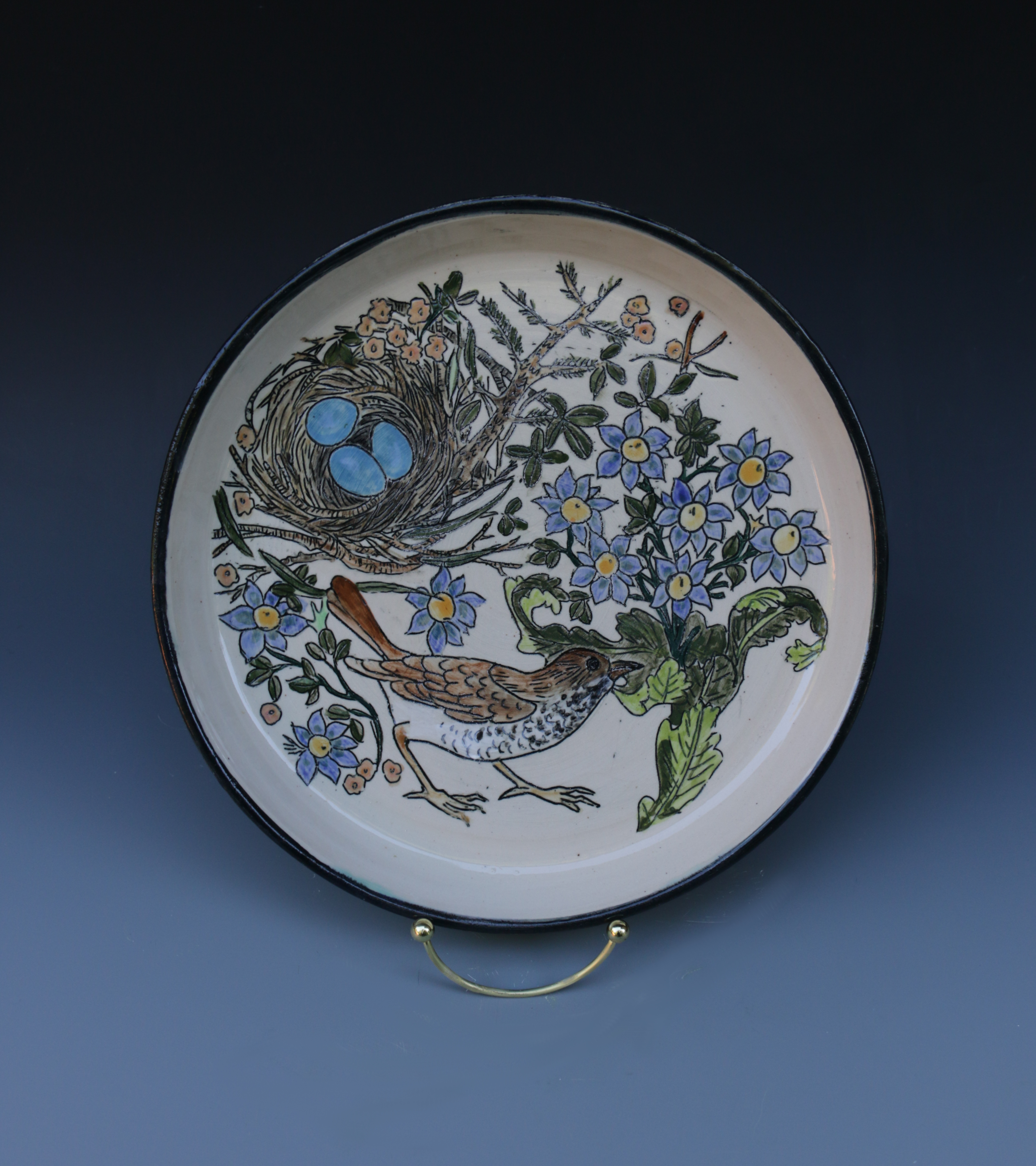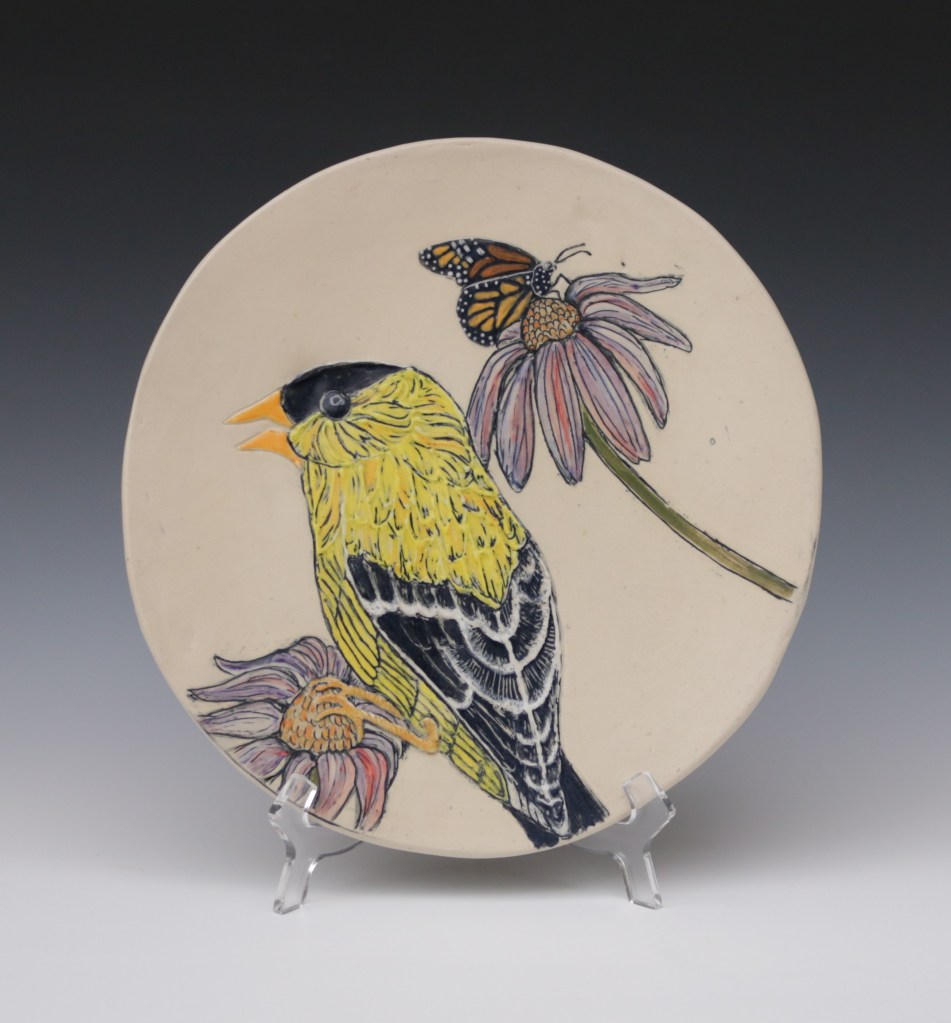 Mary Fritz creates both hand-built functional and sculptural pieces. By using flora and fauna and mother earth imagery, she tells a story of discovery, absurdity, emotion and loss, and humor. She highlights the whimsy of natural processes, realizes the nuanced interconnectedness of all living beings and provokes thoughts concerning the conservation of this planet. Her Studio overlooks the Red Cedar River and is surrounded by nature.