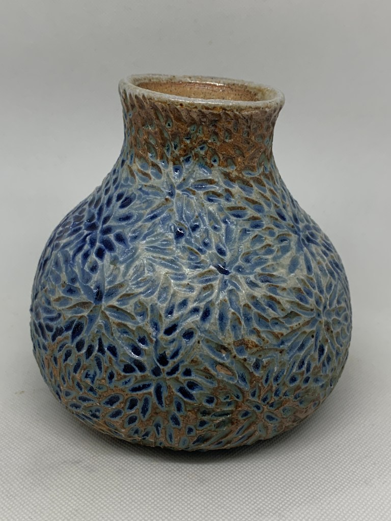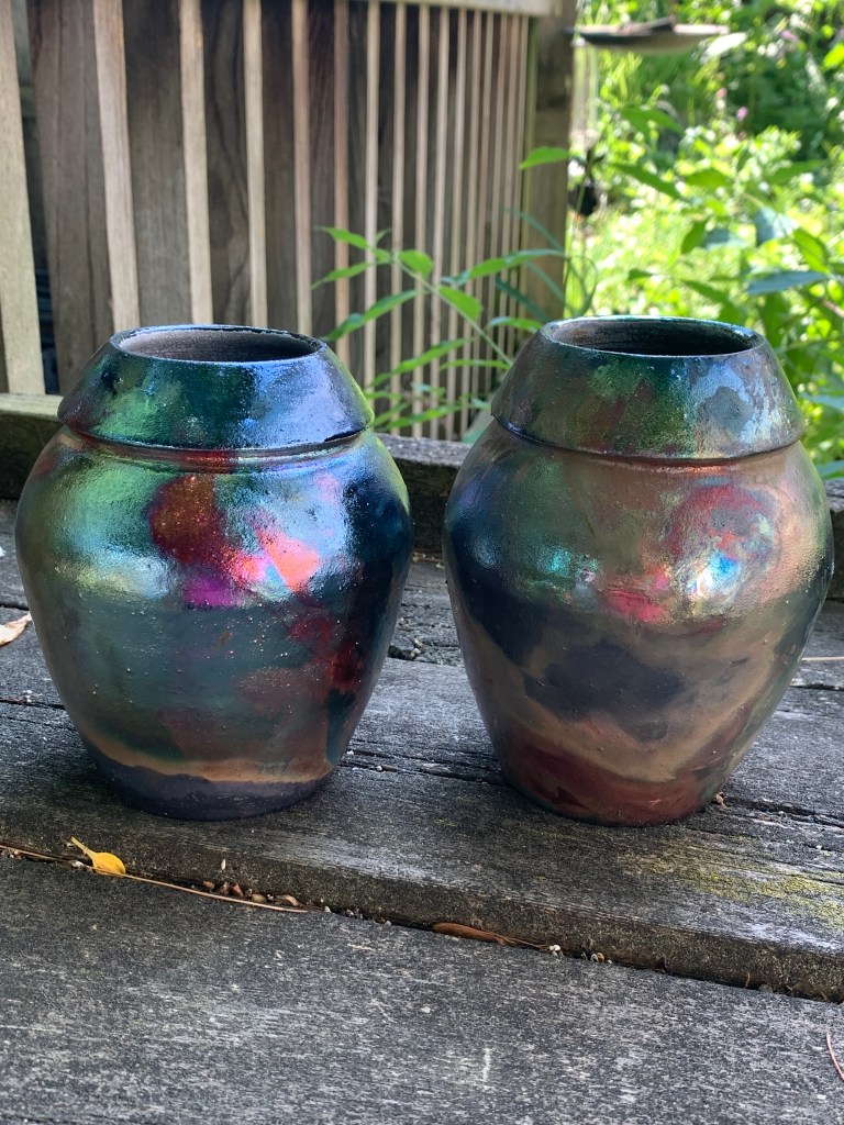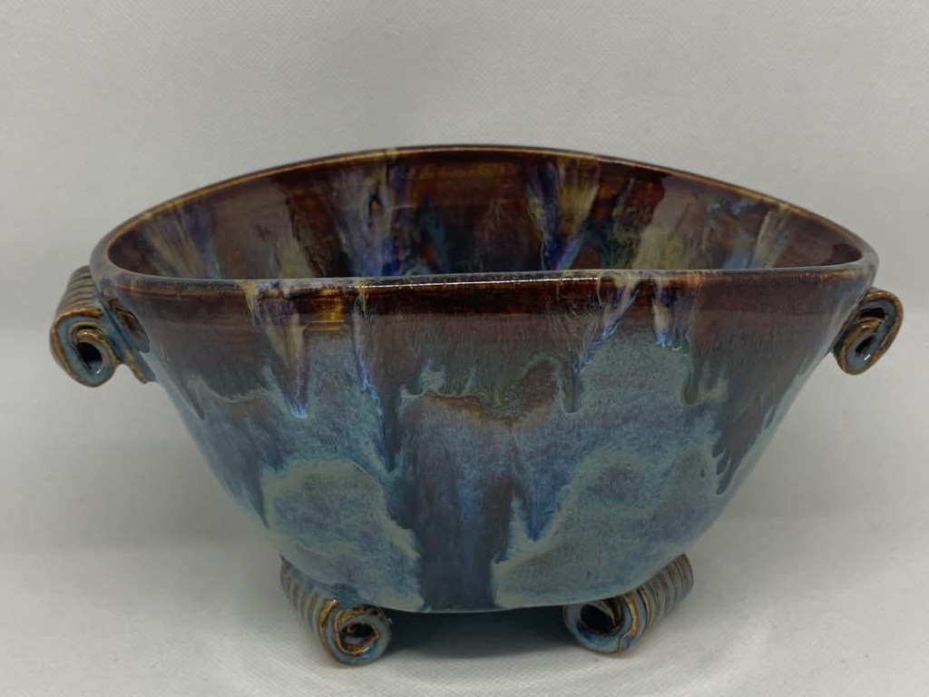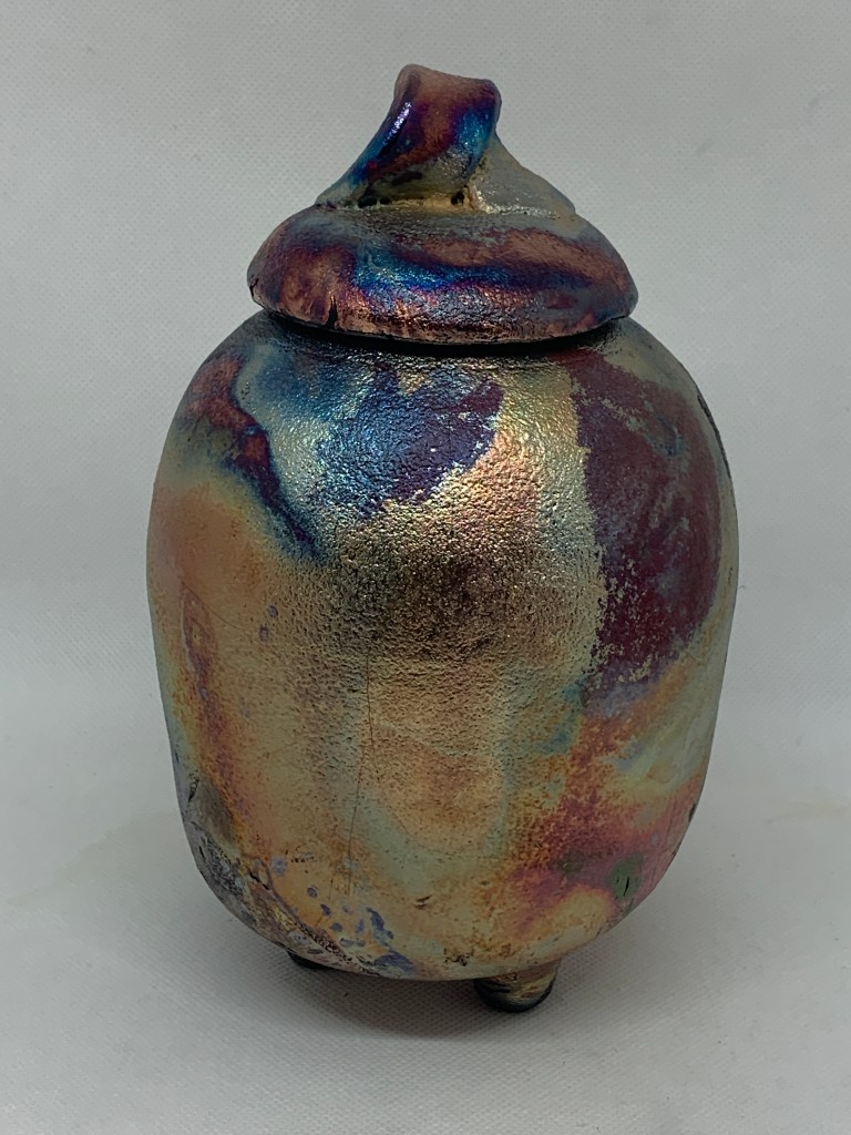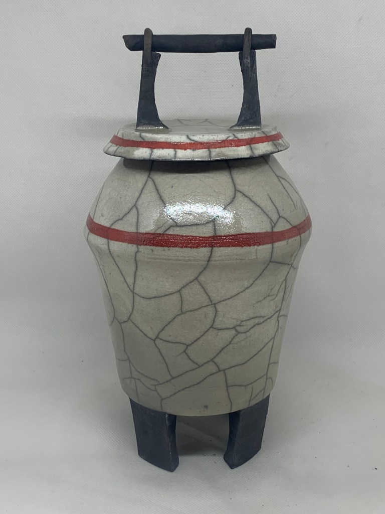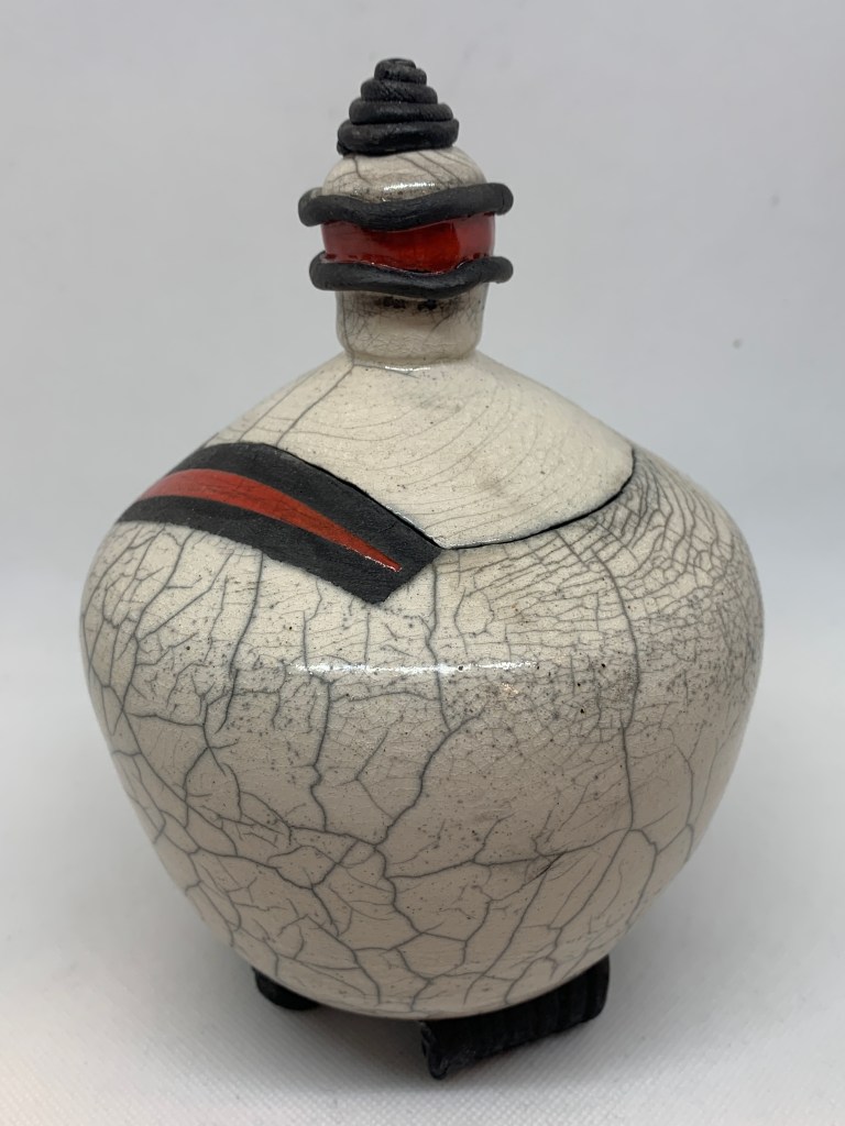 My ceramic work is defined by my love of natural objects, form and textures. I enjoy the diversity of styles, both functional through traditional firing, wood firing and non-functional through the raku process. I love the step by step sequence of raku firing and the serendipitous results. My current work explores thrown vessels with decorative feet, handles, lids and organic forms.