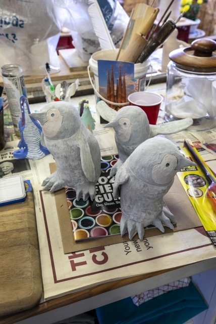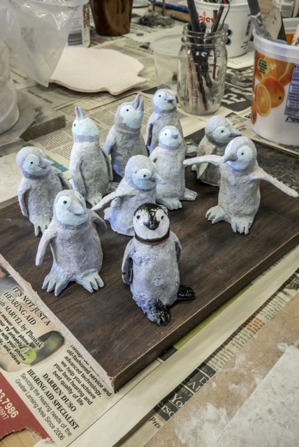 When I retired as a high school art teacher and coach in 2009, I built a ceramic studio that is located on my property in Williamston. Although I consider myself a sculptor, I enjoy working in a variety of media. Primarily I work in high fire stoneware clay, both figuratively and abstractly. I like to glaze decoratively. For the past ten years I have focused on the animal world, nature and allegory for my inspiration.