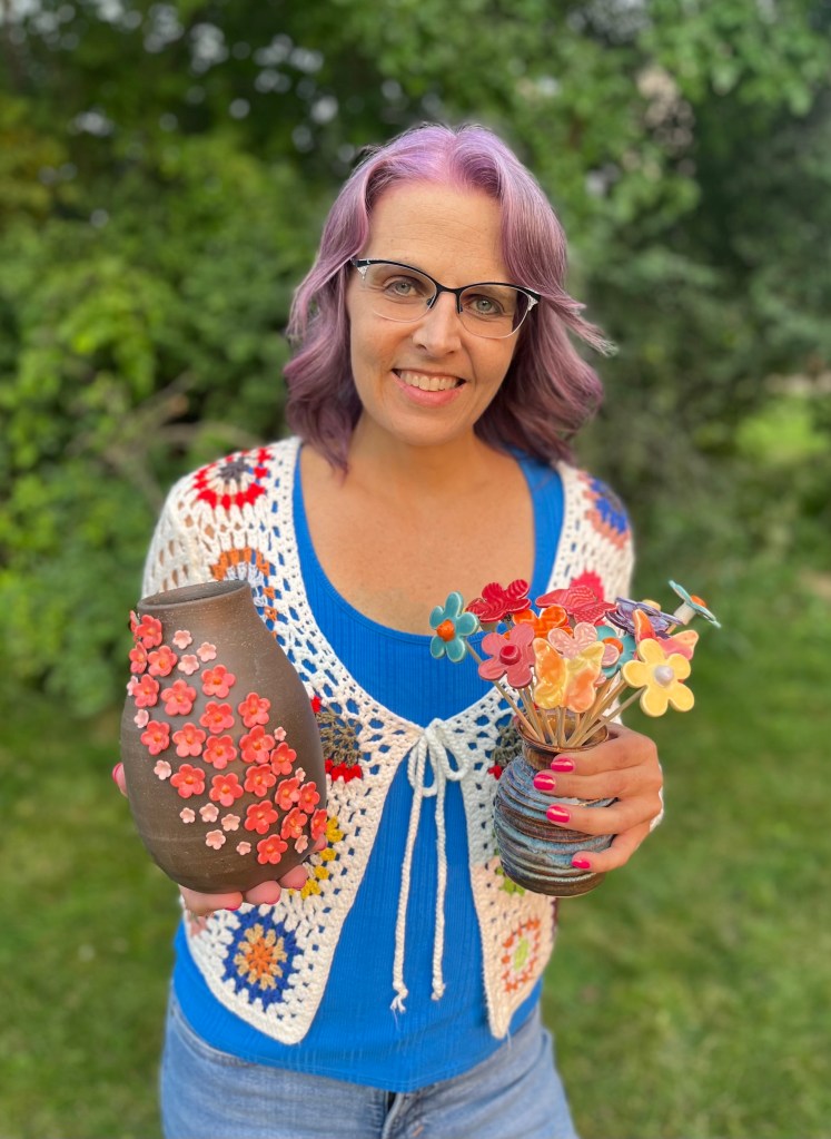 Susan Gronow is a resident potter and teaching assistant at the Oak Grove Pottery studio. She took a pottery class in college and absolutely fell in love with having her hands in clay! She loves creating things with bright colors and happy themes. While she took a long break from being an active potter in the midst of raising and homeschooling her three young kids, she returned to pottery a few years ago, with lots of encouragement from her wonderful husband, and found that her love of creating beautiful, joyful things was as strong as ever.